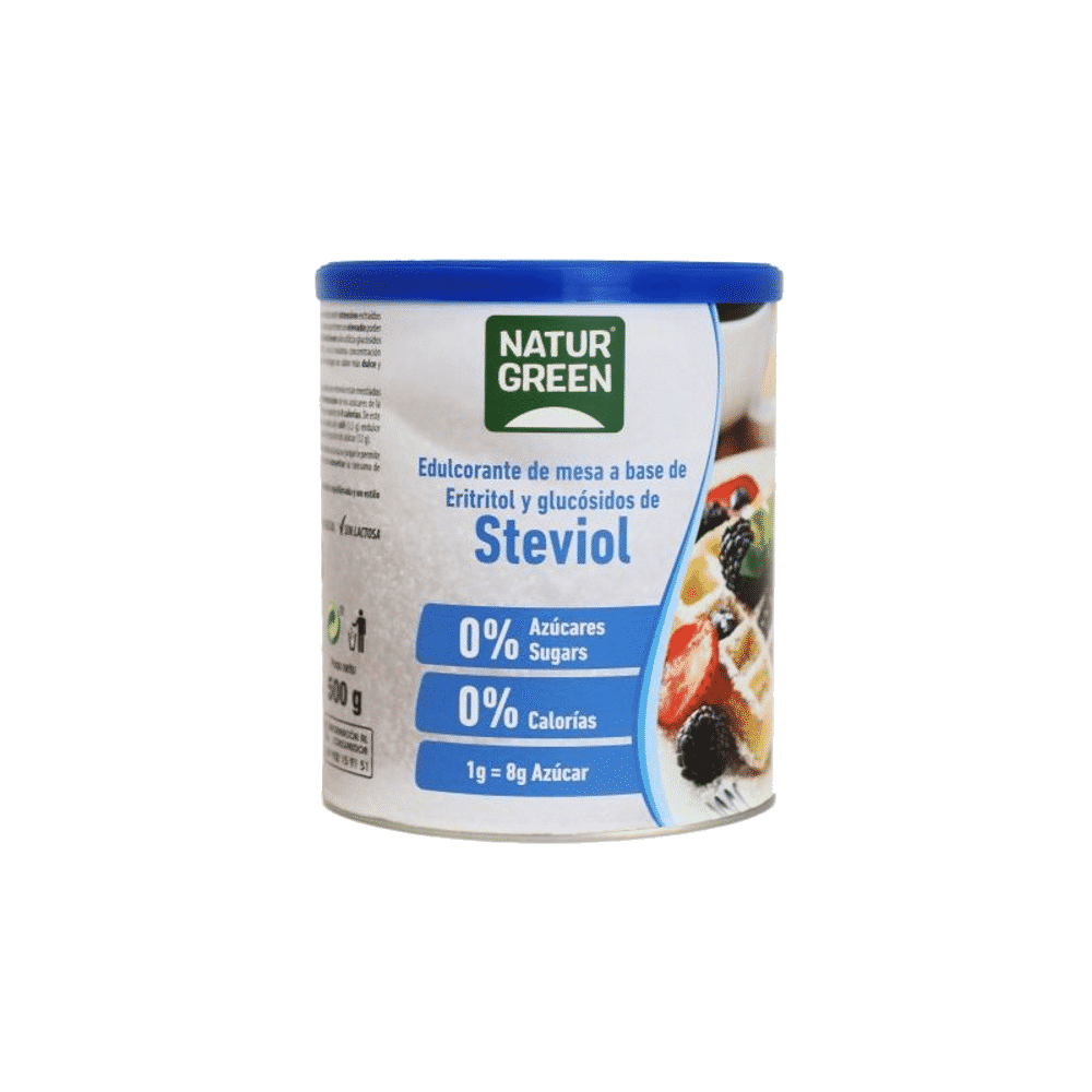 Eritritol (97,6%) e adoçante: glicosídeos de esteviol (2,4%).