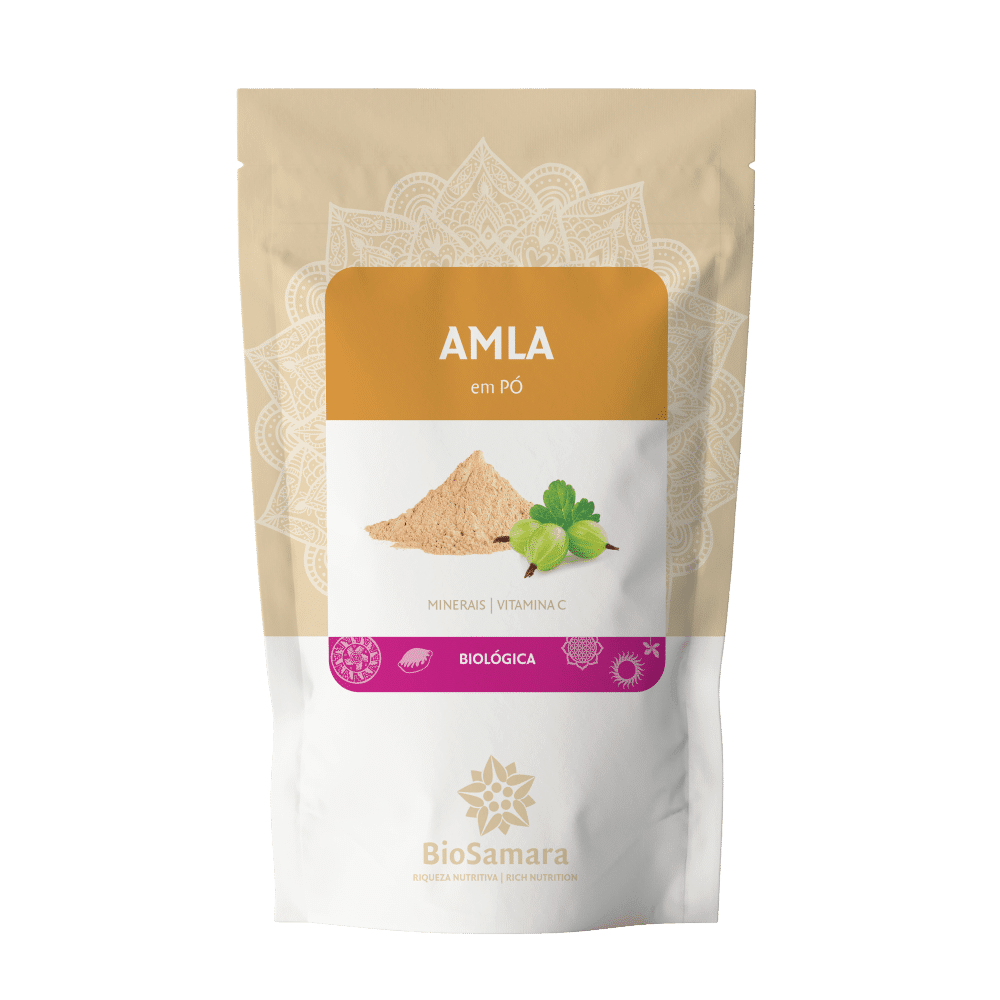 A nossa Amla em pó é 100% pura sem quaisquer aditivos. Para melhores resultados adicione 1 a 2 colheres de chá nos seus cereais ao pequeno almoço, sumos frescos, yogurtes, batidos ou simplesmente dissolvidas em meio copo de água, a Amla dissolve mais facilmente em água morna. 2 colheres de chá fornecem 90mg de vitamina C, se tomar 3 colheres de chá de Amla duas vezes ao dia obtém aproximadamente 270mg de vitamina C.