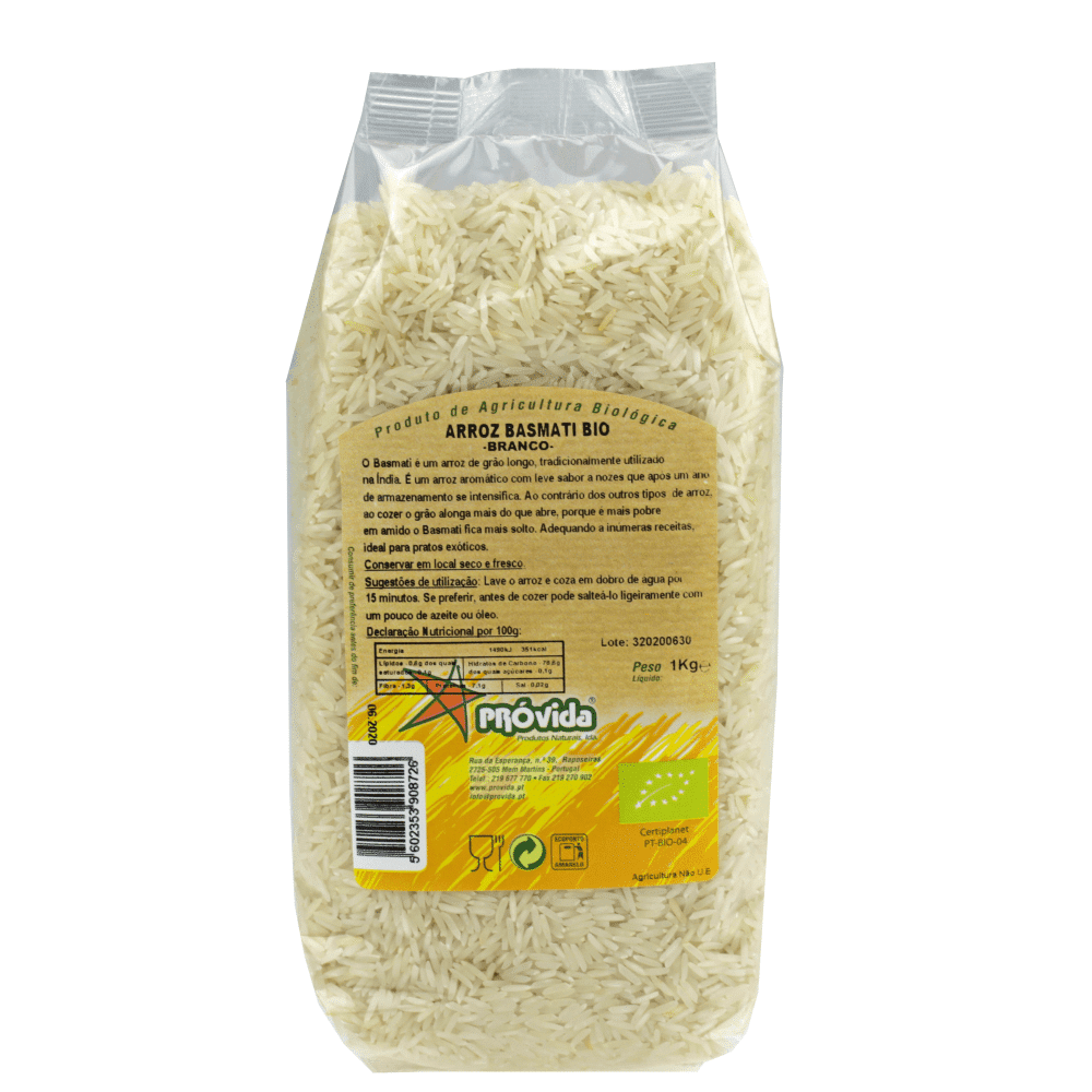 Arroz basmati branqueado de origem biológica