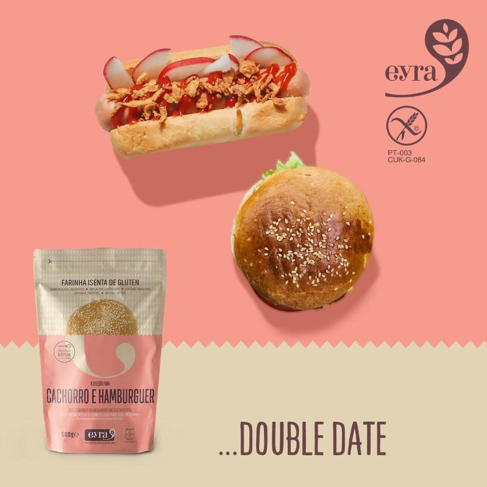 Prefere cachorro ou hambúrguer? Com carne ou vegan, este pão fica sempre bem, fresco e fofo! Experimente o Pão de Cachorro e Hamburger EYRA e comprove se é ou não é a melhor seleção sem glúten!