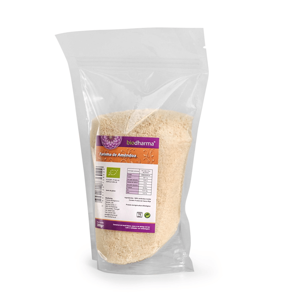 A farinha de amêndoa bio é feita através da moagem de amêndoas biológicas sem casca e preserva as características originais da amêndoa.
