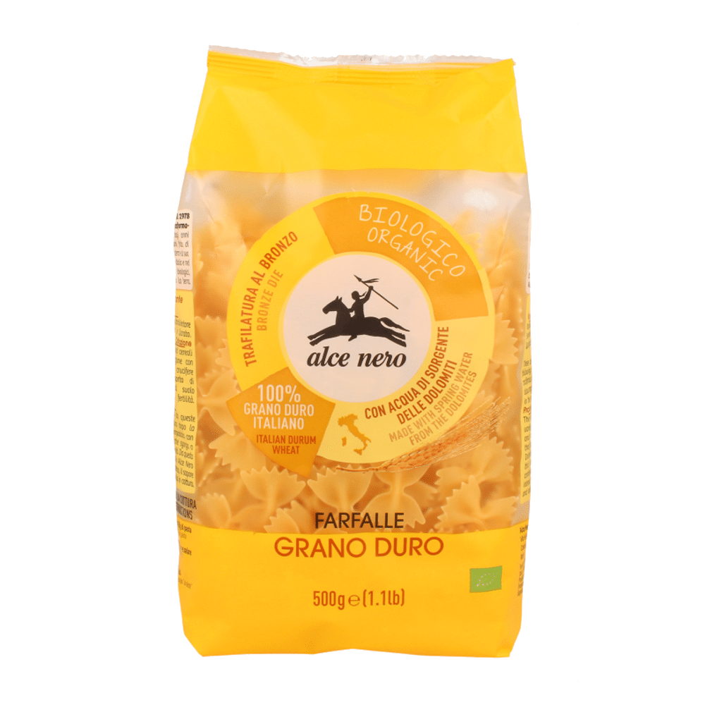 A massa Alce Nero caracteriza-se pela mais alta qualidade orgânica e pelo rigoroso processo de produção que utiliza a água de nascente das Dolomitas e a técnica tradicional do bronze para criar uma massa que é sempre correta. Graças à sua forma, é também ideal para utilização em saladas de massa de Verão.