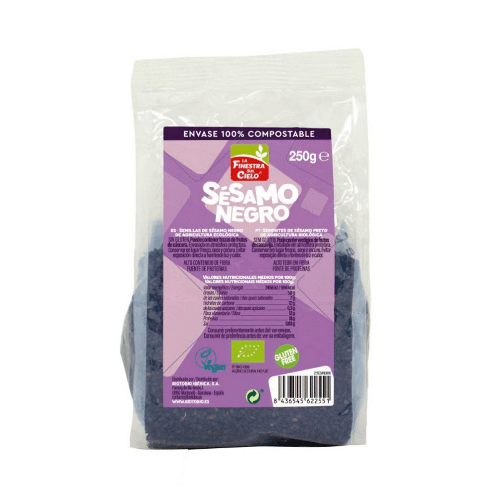 Sésamo preto orgânico, rico em cálcio, ácidos gordos, proteínas e fibras.
