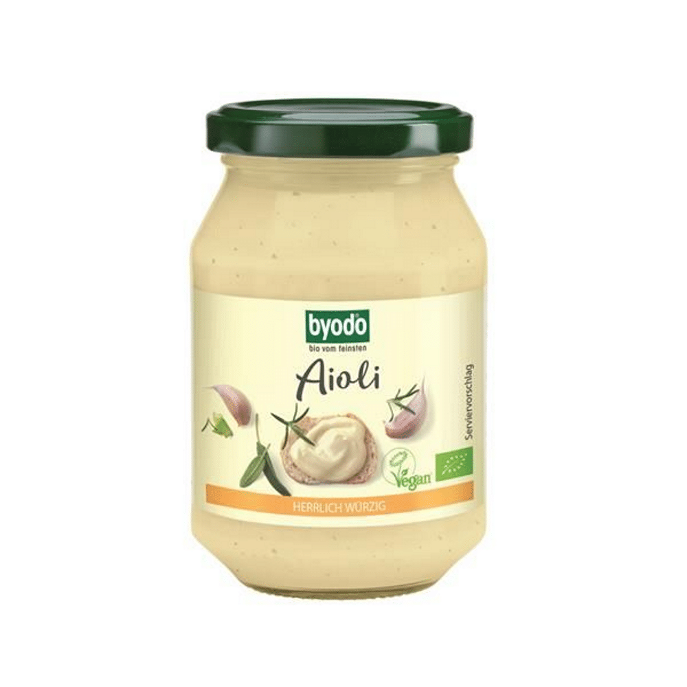 Água, óleo de girassol*, xarope de agave*, alho* 4,3%, azeite virgem extra* 3%, vinagre de vinho branco*, sementes de mostarda Dijon* (água, vinagre de brandy*, sementes de mostarda*, sal marinho), amido de milho*, farinha de sementes de girassol* 1%, vinagre de brandy*, sal marinho, caldo de legumes* (sal marinho, amido de milho*, cenoura*, aipo*, cebola*, pastinaca*, tomate*, alho francês*, condimentos* (contém aipo*), óleo de girassol*), caril*, farinha de araruta*, espessante: goma de guar*.
