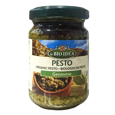 Óleo de girassol*, manjericão*(38,0%), azeite*,amêndoas* (8,6%), queijo de Grana Padano (6,0%), sal, alho*, ácido cítrico (E330).