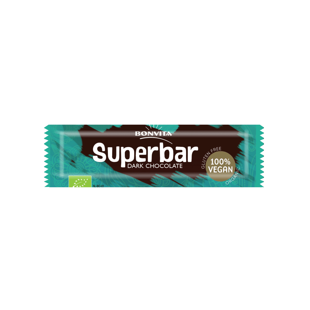Tâmaras*, amêndoas*, passas*, proteína de arroz*, goij berries*, chocolate* 20% (massa de cacau, açúcar de cana, manteiga de cacau)*, concentrado de espirulina*, beterraba*, açaí em pó*, mirtilos*, chia semente*. Sólidos de cacau pelo menos 54%.
