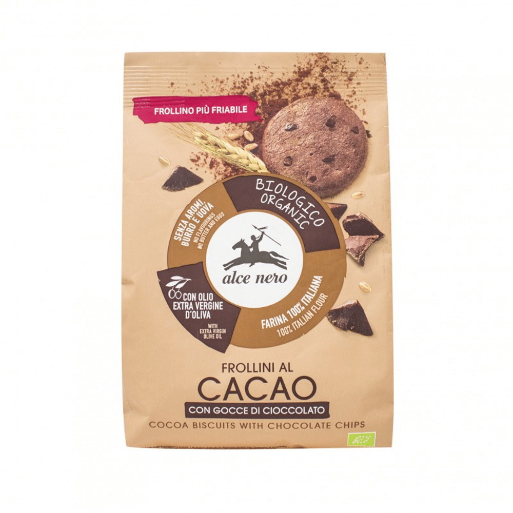 Deliciosos biscoitos de trigo com pedaços de cacau e chocolate. Elaborados apenas com azeite virgem extra, não contêm qualquer aroma e todos os ingredientes provêm da agricultura biológica.