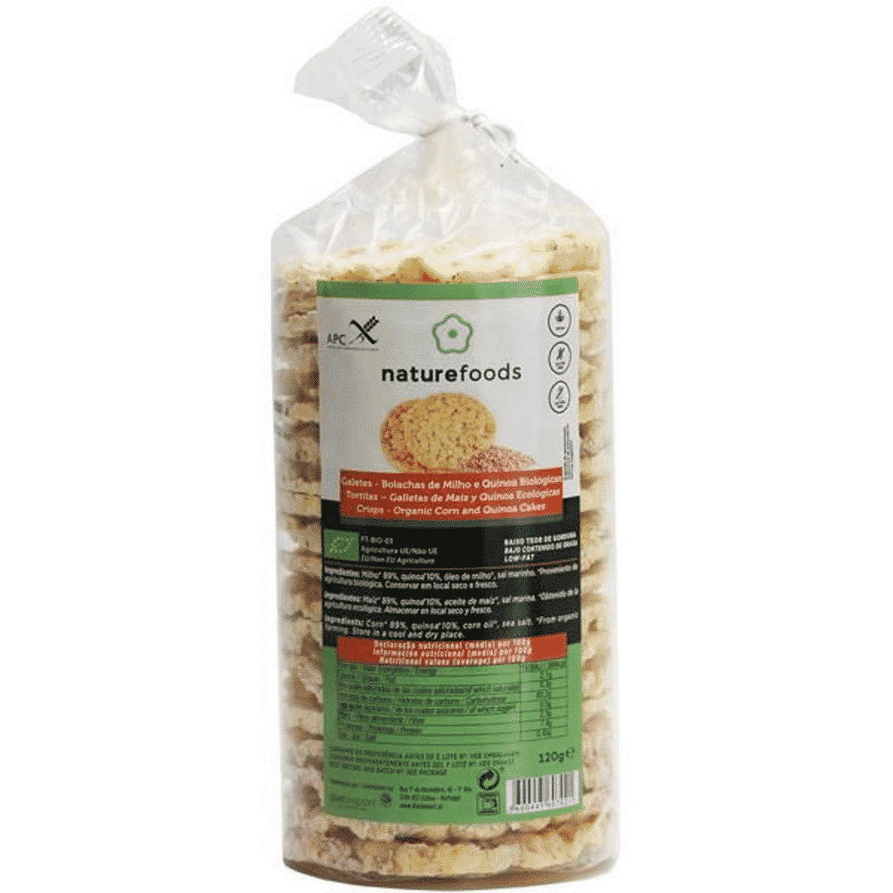 Milho* 89%, quinoa* 10%, óleo de milho*, sal marinho.