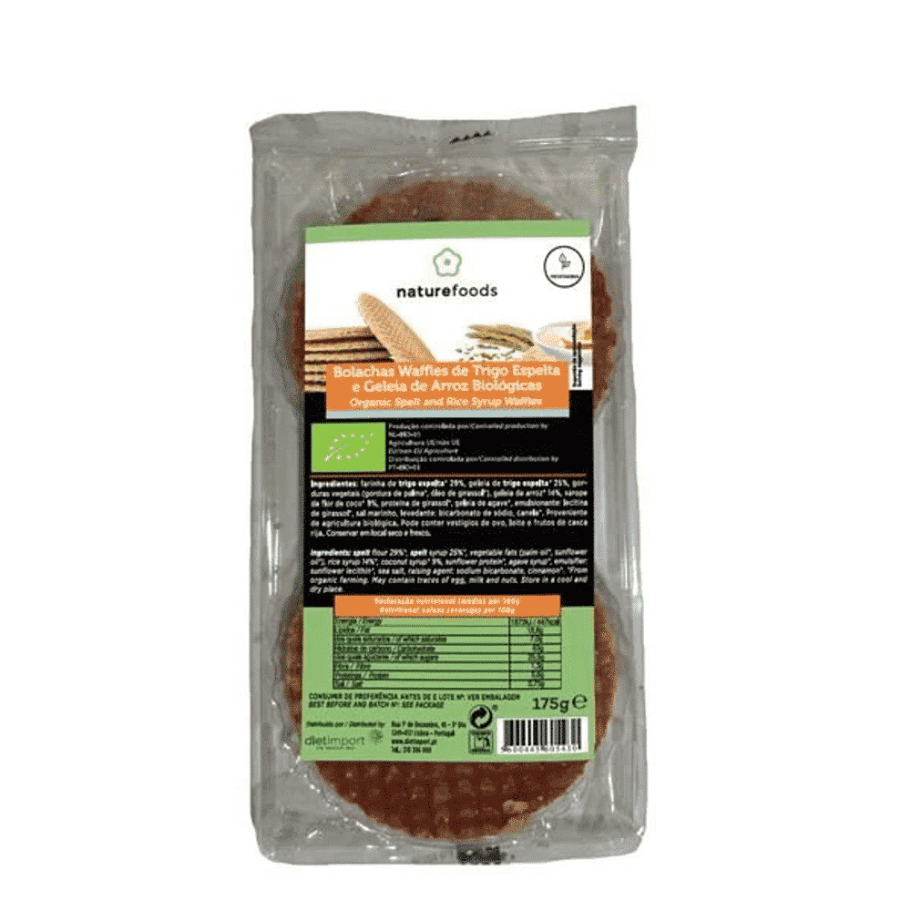 Farinha de trigo espelta* 29%, geleia de trigo espelta* 25%, gorduras vegetais (gordura de palma*, óleo de girassol*), geleia de arroz* 14%, xarope da flor de coco* 9%, proteína de girassol*, geleia de agave*, emulsionante: lecitina de girassol*, sal marinho, levedante: bicarbonato de sódio, canela*.