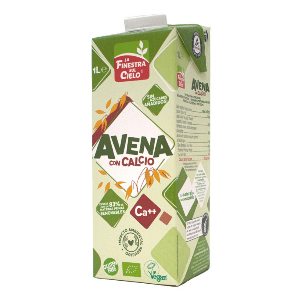 Bebida de aveia cultivada organicamente enriquecida com cálcio à base de plantas e sem adição de açúcar.