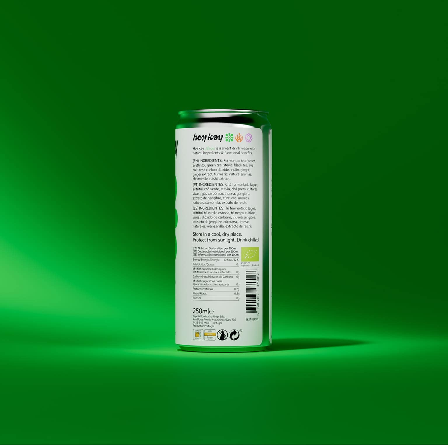 As bebidas Hey Kay são isentas de açúcar e com baixas calorias, isentas de conservantes e aditivos artificiais, e desenvolvidas com benefícios funcionais: clareza mental (nootrópicos), suporte digestivo (prebióticos) e equilíbrio do stress (adaptogénicos).
