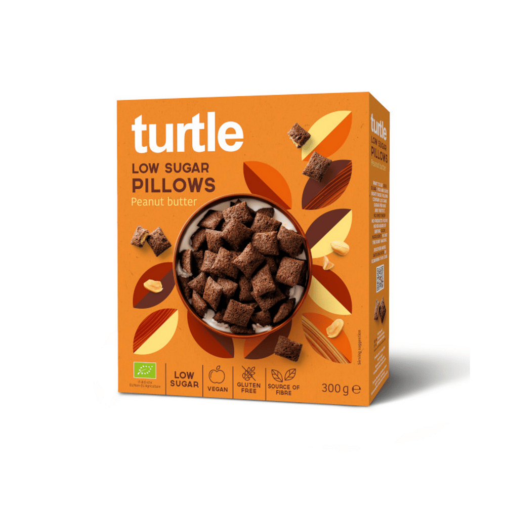 Almofadas com recheio de manteiga de amendoim, baixo teor de açúcar, biológicas e sem glúten.