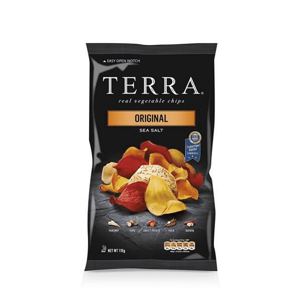 Diz-se frequentemente que não há nada de novo debaixo do sol, mas as Terra Chips são ao mesmo tempo tradicionais e exclusivamente novas. Tradicionais, no sentido de que estes vegetais já são apreciados desde o início da civilização. Novas, porque os chefs juntaram estas deliciosas variedades de legumes e obtiveram uma coleção de rodelas leves, plena de cores naturais e com um equilíbrio de aromas agradável – complexo, a frutos secos, rico e delicado. Terra Chips.