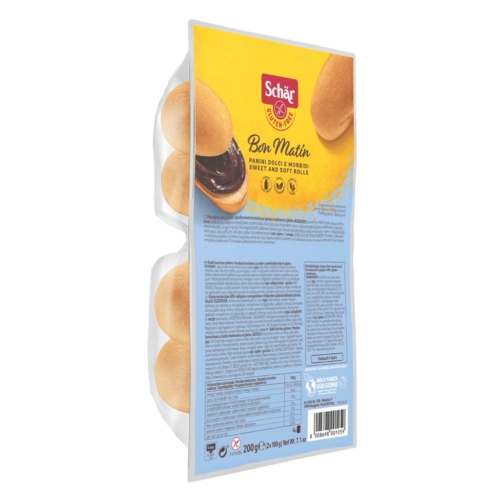 Farinha de arroz, amido de milho, água, açúcar, ovo, amido de arroz, margarina vegetal (gordura de palma, água, óleo de colza, sal, emulsionante: mono e diglicéridos de ácidos gordos acidificante: ácido cítrico, aroma natural), xarope de glucose, fibra vegetal (psílio), espessantes: goma guar, hidroxipropilmetilcelulose, levedura, emulsionante: mono e diglicéridos de ácidos gordos, sal, acidificante: ácido cítrico, aroma.