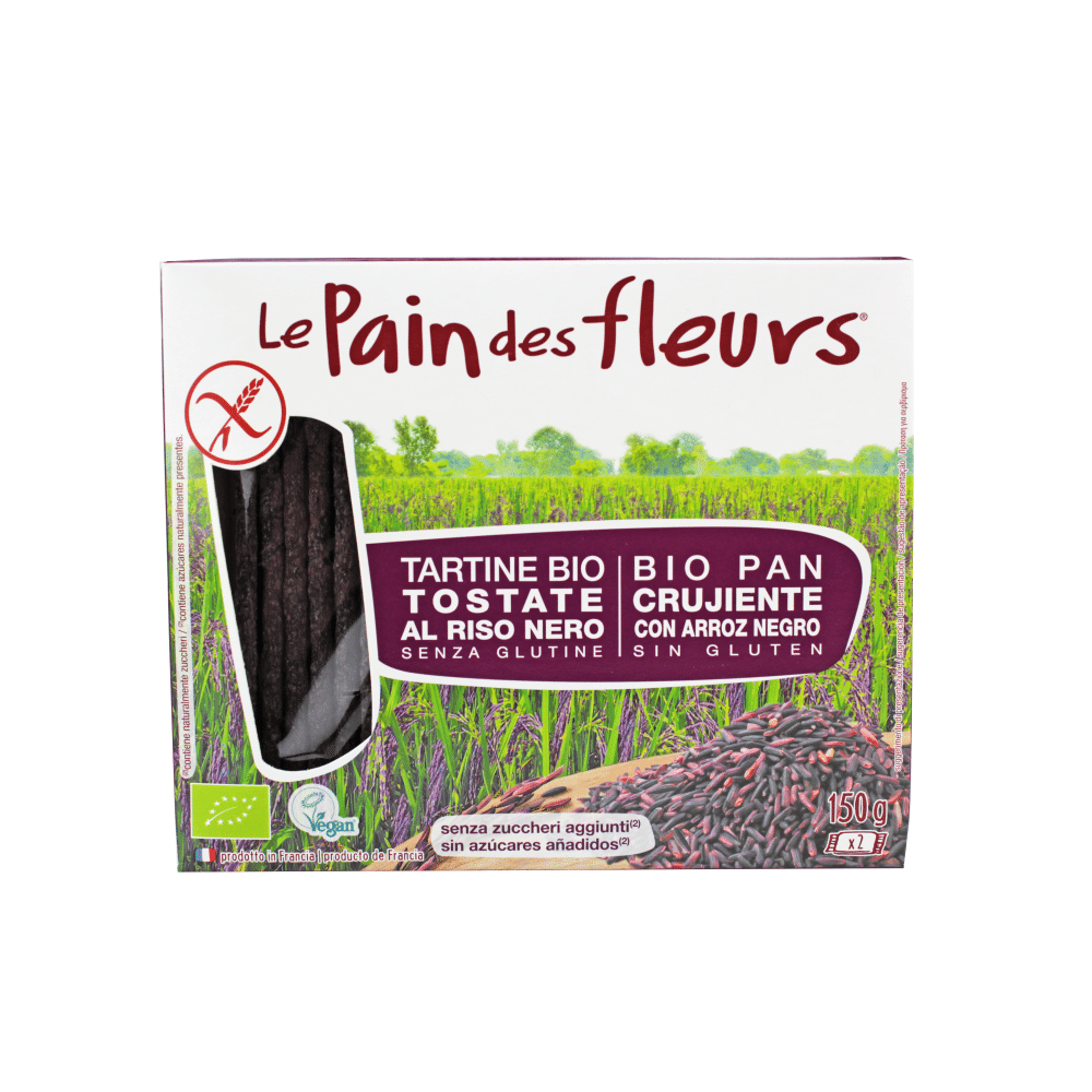 Bolacha crocante com arroz preto. Alto teor de magnésio. Sem adição de açúcares. Contém açúcares naturalmente presentes. Fonte de fibra. Produto sem glúten. Vegan.