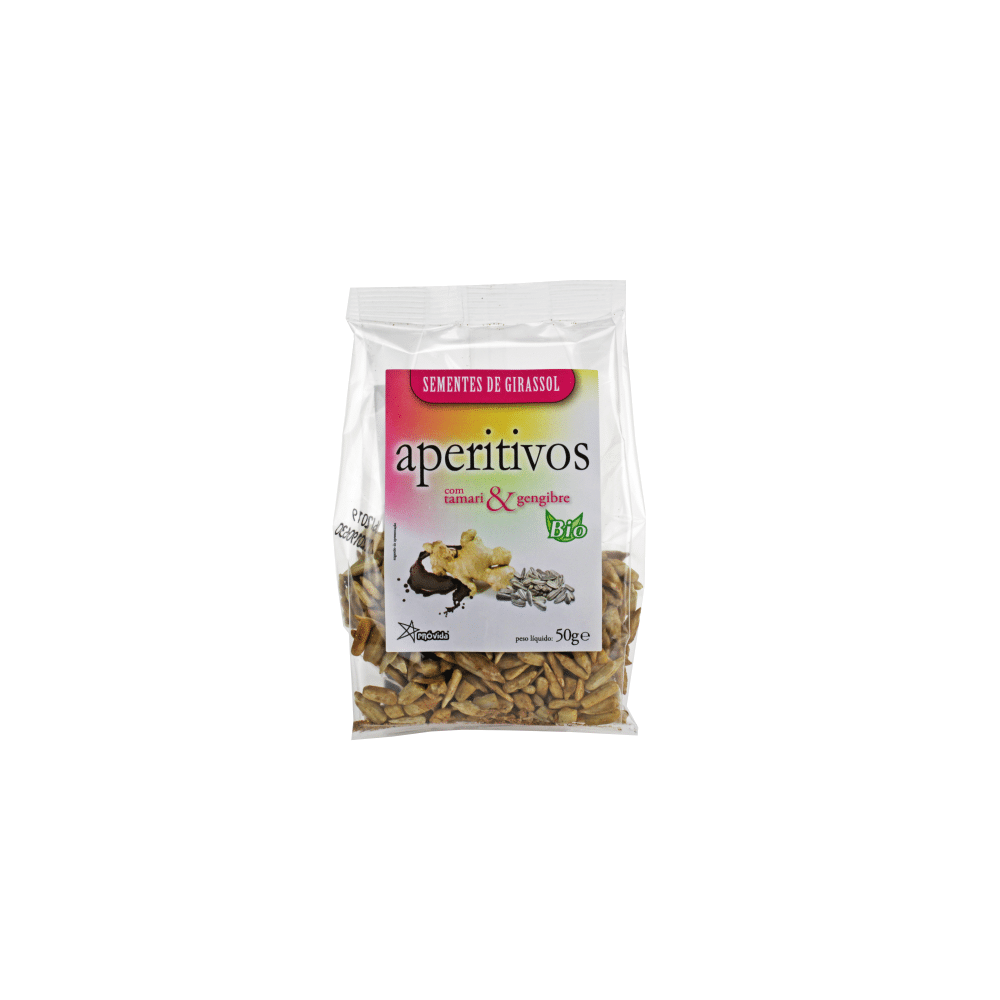 Sementes de girassol* (94%), molho de soja – tamari*, (feijão de Soja* (40%), água, sal marinho, mirin* (arroz*, arroz glutinoso*, água), farinha de cevada*, koji – aspergillus oryzae), gengibre*.