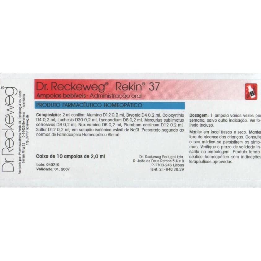 Alumina D12, Bryonia D4, Colocynthis D4, Lachesis D30, Lycopodium D6, Mercurius sublimatus corrovisus D8, Nux vomica D6, Plumbum aceticum D12, Sulfur D12, em solução isotónica estéril de NaCI.