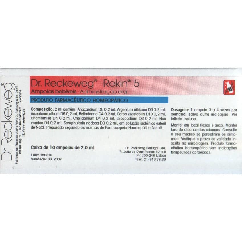 Anacardium D6, Argentum nitricum D6, Arsenicum album D6, Belladonna D4, Carbo vegetabilis D10, Chamomilla D4, Chelidonium D4, Lycopodium D6, Nux vomica D4, Scrophularia nodosa D3, em solução estéril de NaCI.