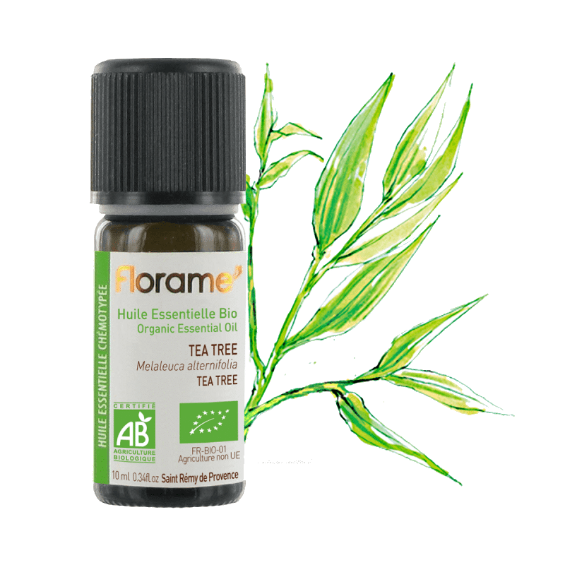 (Melaleuca alternifolia).Proveniente: Oceania e África do Sul / Origem: folha;Lista de ingredientes: óleo essencial de árvore de chá.Moléculas principais: terpinèn-4-ol, γ-terpinène, α-terpinène.
