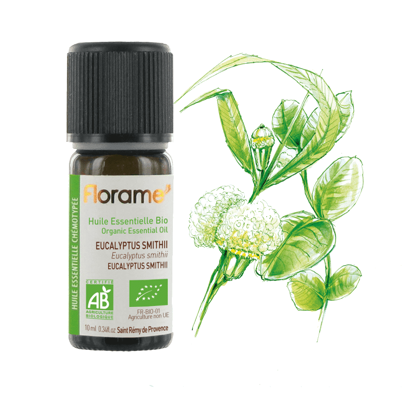 Proveniente: África / Origem: Folha;Lista de ingredientes: Óleo Essencial de Eucalipto Smithii. Moléculas principais: 1,8-cinéole, α-terpinéol.