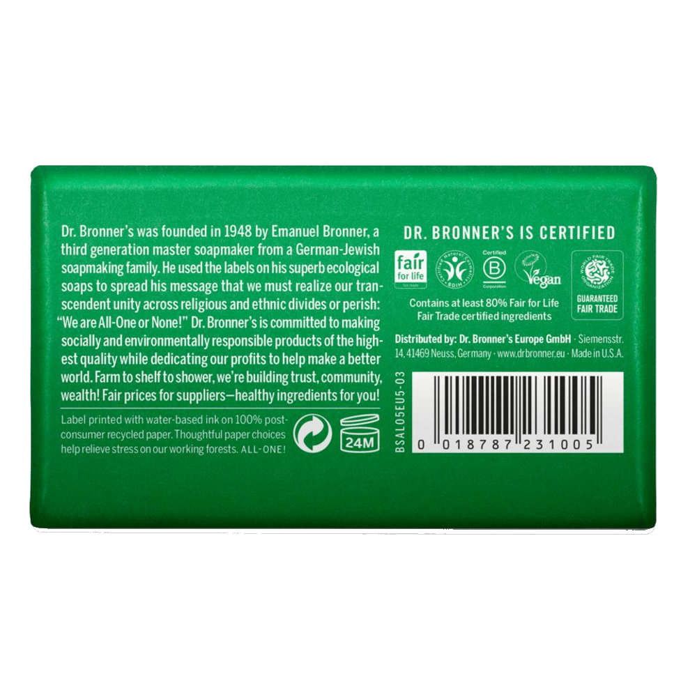 Com uma fórmula simples e ecológica, os sabonetes biológicos Dr.Bronner’s são de origem vegetal e 100% biodegradáveis. São elaborados com ingredientes de comércio justo certificado e óleos biológicos para uma espuma suave que não seca a sua pele.