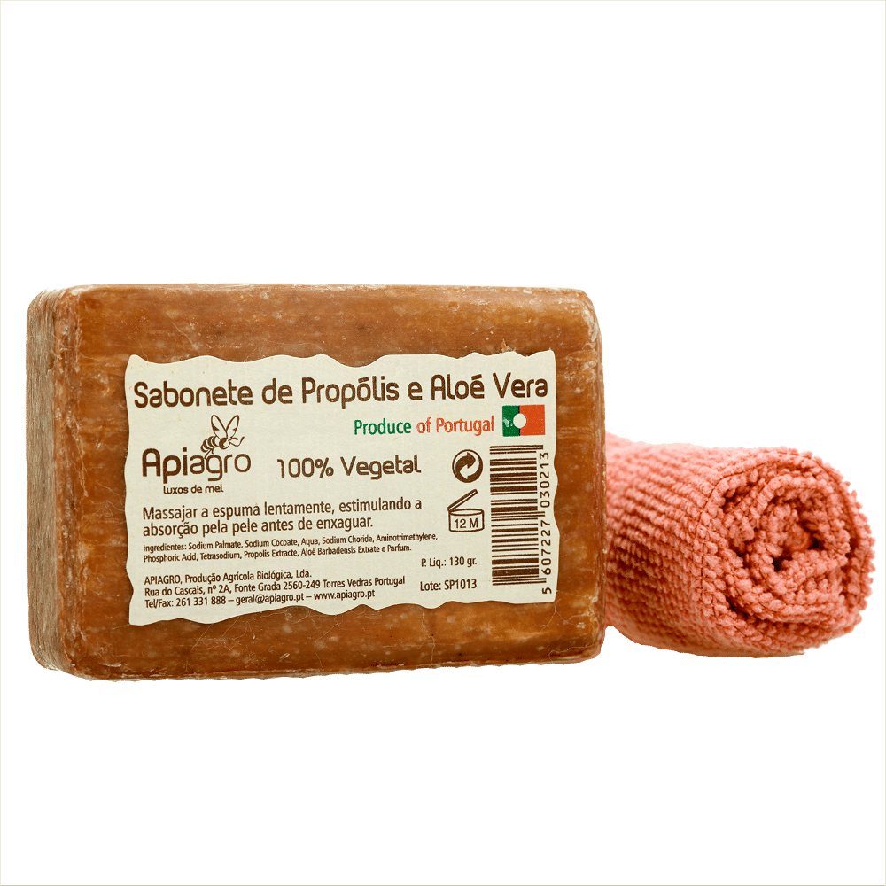 Sabonete com Propólis e Aloé Vera: Para peles oleosas, acne e borbulhas. Pelo seu poder antisséptico é muito útil para a higiene íntima das senhoras
