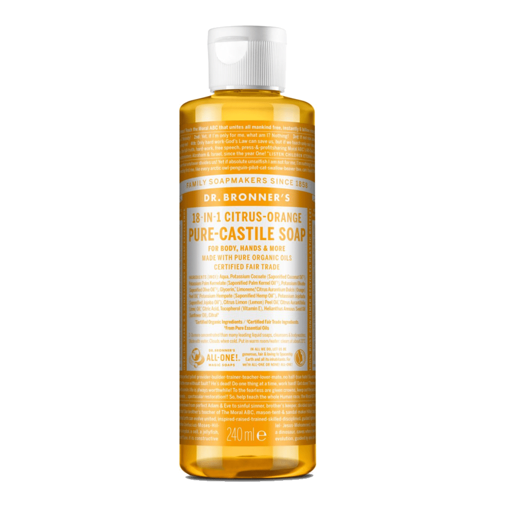 Os sabonetes líquidos Dr. Bronner’s são completamente biodegradáveis e de base vegetal sendo feitos com óleos certificados biológicos e de comércio justo.