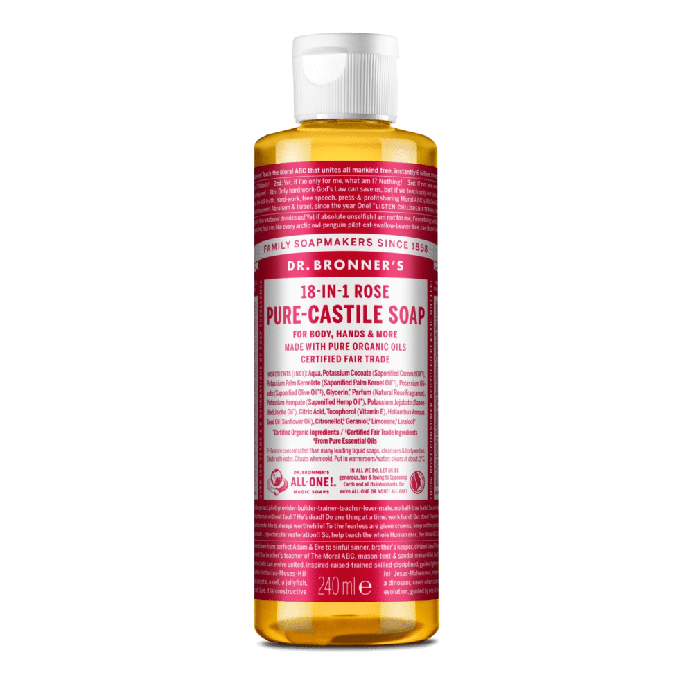 Os sabonetes líquidos Dr. Bronner’s são completamente biodegradáveis e de base vegetal sendo feitos com óleos certificados biológicos e de comércio justo.