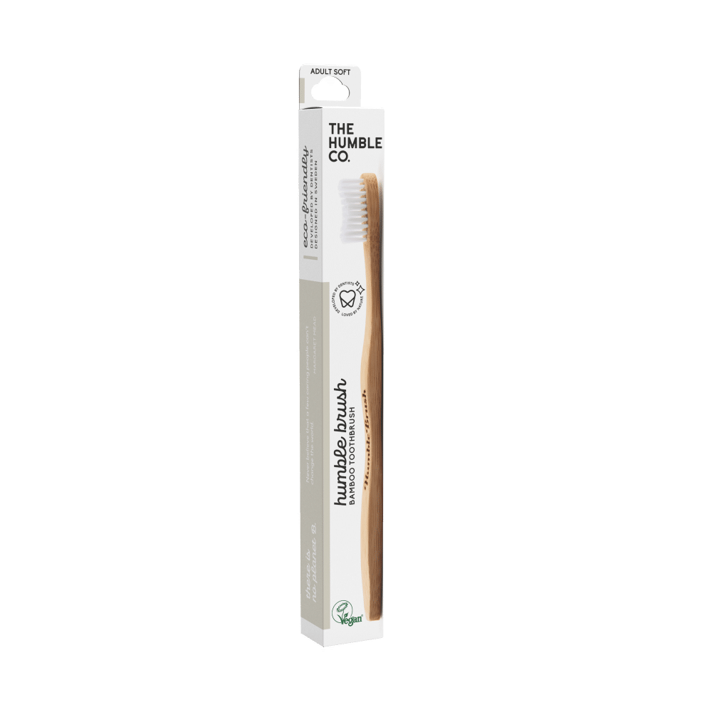 Aprovada por dentistas, a escova de dentes de bambu Humble Brush Sensitive tem cerdas suaves com pontas finas para uma limpeza suave e eficiente.