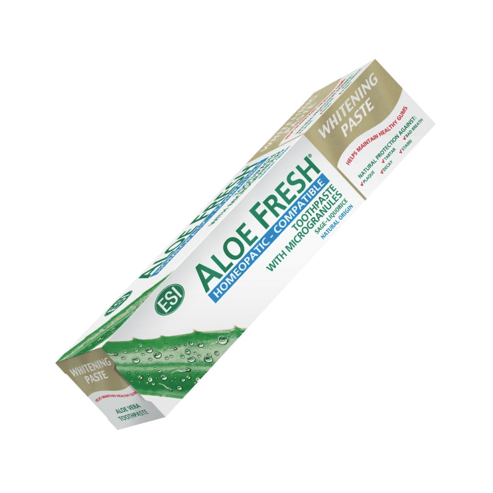 Ajuda a combater as cáries, o tártaro e problemas de gengiva. A pasta dentífrica Aloe Fresh Whitening Paste contém uma combinação única de ingredientes ativos naturais para um sorriso fresco e brilhante. A pasta confere branqueamento e brilho aos dentes.