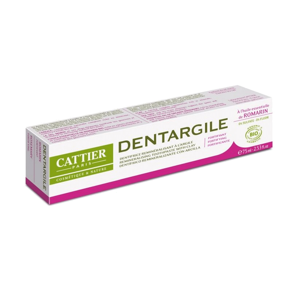 A pasta dentífrica Cattier contém a argila que ajuda a evitar a formação da placa bacteriana prevenindo as cáries dentárias, o sal marinho rico em oligoelementos que tonificam as gengivas e o óleo essencial de alecrim o que ajuda a evitar a desmineralização dos dentes.