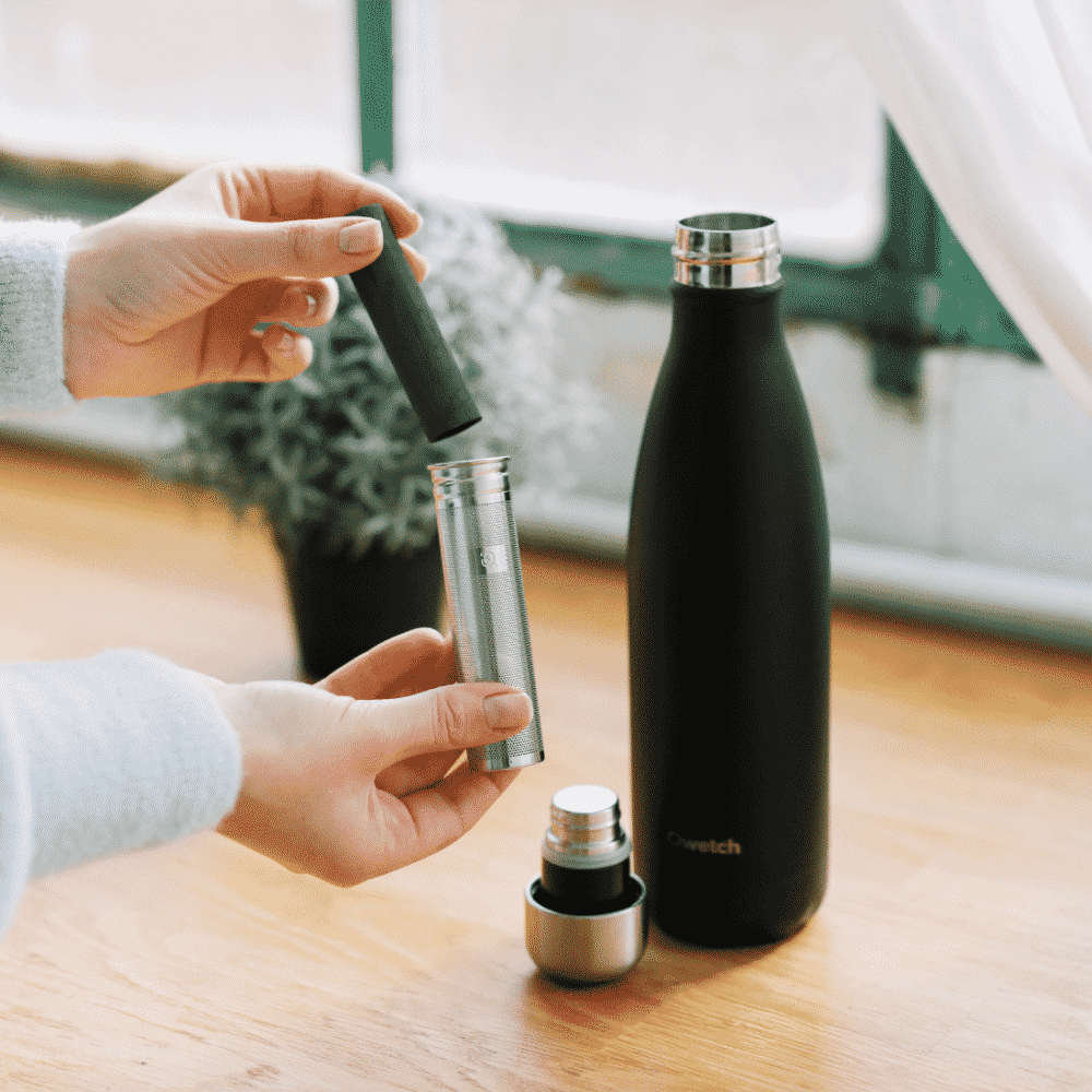 - Coloque o bastão na tampa do infusor da sua garrafa Qwetch (capacidade para tampas de infusor de 500ml e 750/1000ml) cheia de água potável da torneira.