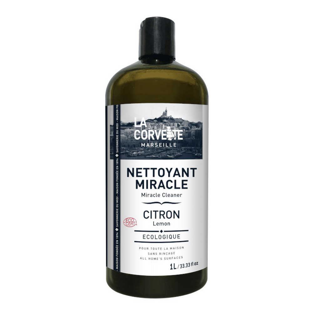 O detergente “Miracle” La Corvette é um produto ecológico essencial para limpar a casa: armários, bancadas, casas de banho, pisos … A sua fórmula à base de sabão dissolve gorduras e outras sujidades difíceis.