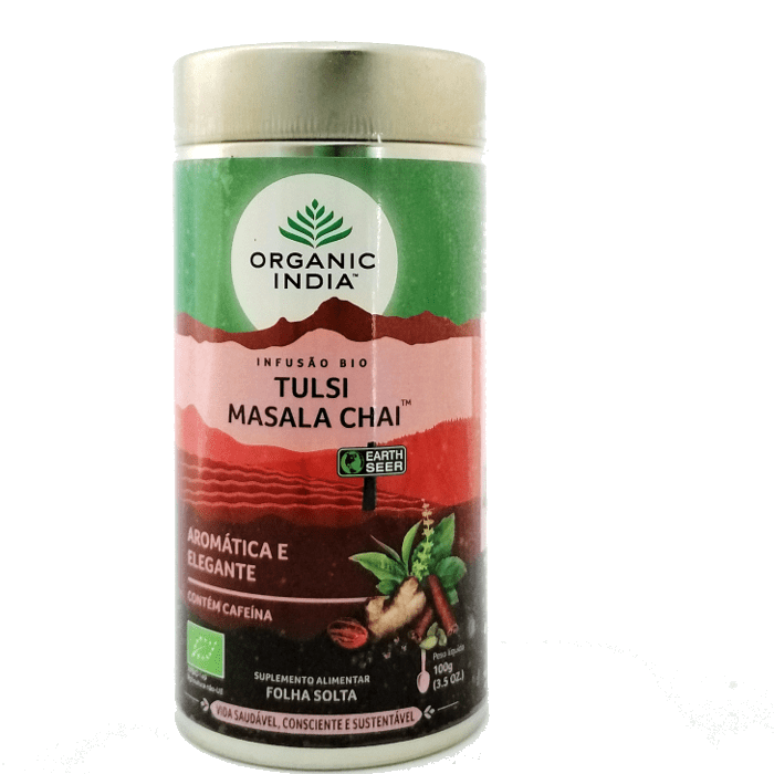Doce, condimentado e alegre, Tulsi Masala Chai é um conquistador! Combinamos a nossa mistura (masala) favorita de especiarias biológicas, acabadas de moer com o chá Assam da melhor qualidade e o distintivo Tulsi. Tulsi Masala Chai transporta-nos até exóticas e longínquas paragens. Menos cafeína e mais sabor e aroma fazem desta infusão um prazer diário saudável e saboroso.