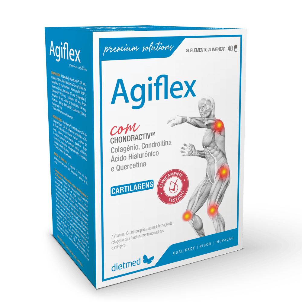 Chondractiv™ (contendo 55% de Colagénio Tipo II, 12% de Sulfato de Condroitina e 2% de Ácido Hialurónico), agente de volume: celulose microcristalina, colagénio marinho*, gelatina, ácido L-ascórbico, quercetina, hialuronato de sódio, sulfato de condroitina*, naringina, antiaglomerantes: estearato de magnésio, dióxido de silício.