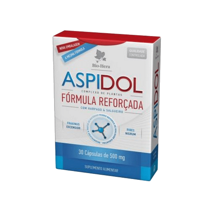 Salix alba, extrato seco de Salgueiro Branco (casca), Fraxinus excelsior, extrato seco de Freixo (folhas), Coffea arabica, extrato seco de Cafeeiro (baga), Harpagophytum procumbens, extrato seco de Harpago (raíz), Filipendula ulmaria, extrato seco de Ulmária (partes aéreas), Ribes nigrum, extrato seco de Groselheira negra (frutos e folhas), Estereato de Magnbésio E470b, Cápsula: Gelatina.
