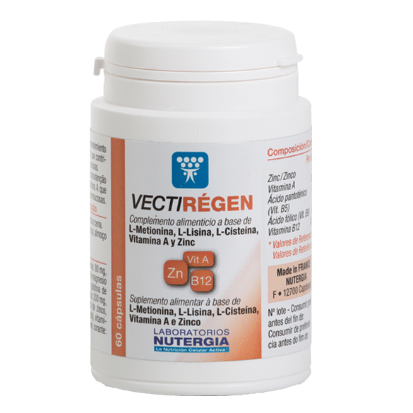 VECTIREGEN é rico em zinco, implicado na manutenção da pele, cabelo e unhas. Também contém aminoácidos sulfurados presentes na composição do cabelo e das unhas.