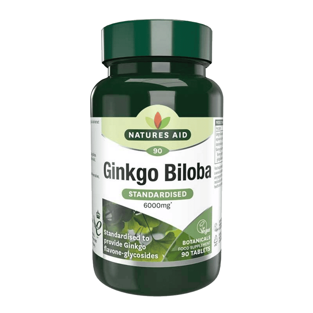 Os comprimidos de Ginkgo Biloba são produzidos para os padrões GMP, tornando-os um dos melhores produtos de qualidade no mercado. Cada comprimido contém 120 mg de extrato de Ginkgo Biloba, equivalente a 6000 mg de ginkgo seco, que também o torna um dos produtos de alta potência disponíveis. O Ginkgo aumenta a irrigação dos tecidos, por ação a nível das paredes dos vasos, diminuindo o risco trombólico microcirculatório, evitando a agregação plaquetária e ativando o metabolismo cerebral. Tem efeito protetor neuronal e neurosensorial, facilitando a formação de óxido nítrico e a vasodilatação arterial, prevenindo a degenerescência das membranas das células nervosas. Pela ação reguladora vascular, melhora a circulação e diminui a permeabilidade capilar o que, associado a um aumento da resistência dos microvasos, conduz a uma ação antiedematosa. Os flavonoides têm uma ação protetora dos nervos, coração, vasos sanguíneos e retina. Os terpenóides, como os ginkgólidos, melhoram a circulação, pois têm ação vasodilatadora e reduzem a agregação das plaquetas. Os flavonoides podem ajudar a minimizar problemas da retina, como a degenerescência macular relacionada com a idade. O extrato estandandizado de ginkgo também está indicado na demência de Alzheimer e na demência aterosclerótica, melhorando a função cognitiva, a memória e o relacionamento social, evitando tendências depressivas e retardando a progressão da doença. Indicado ainda em situações de claudicação intermitente e glaucoma.
