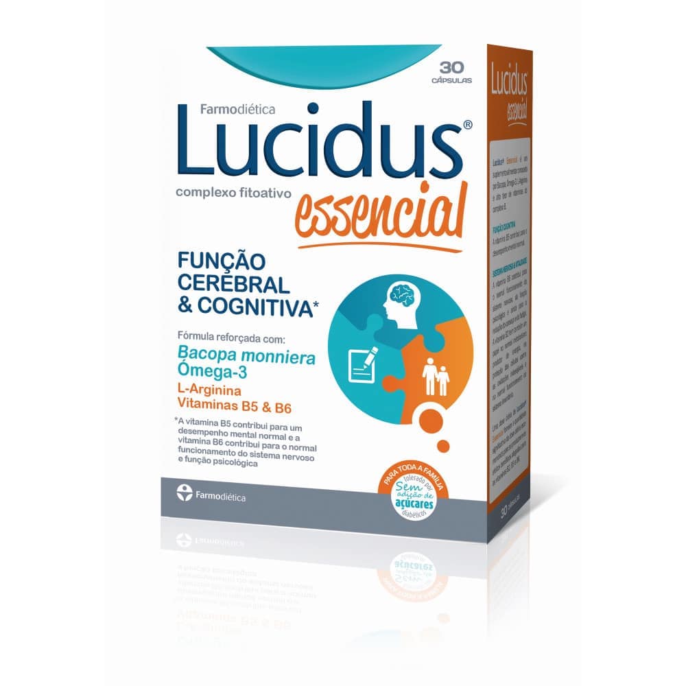 Lucidus Essencial é um suplemento alimentar composto por Bacopa, Ómega-3, L-Arginina e um alto teor de vitaminas do complexo B.