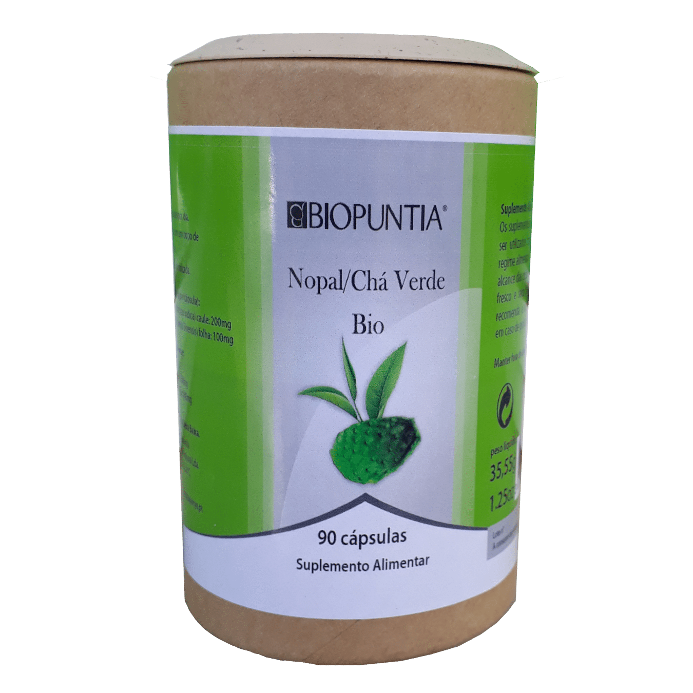 Nopal*(Opuntia ficus indica) caule, Chá Verde*(Camélia Sinensis) folha. Cápsula Vegetal