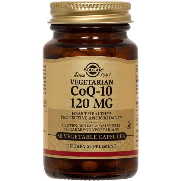 Solgar CoQ-10 é um suplemento alimentar que fornece 120 mg de coenzima Q-10 por cápsula.