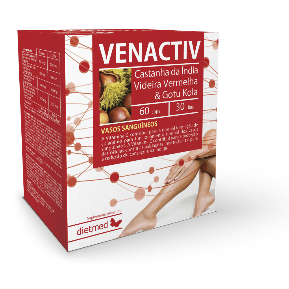 Aesculus hippocastanum (Castanha da Índia; extrato seco das sementes contendo pelo menos 20% de aescina), Centella asiatica (Gotu Kola; extrato seco das folhas contendo pelo menos 20% de asiaticosídeo), Ruscus aculeatus (Ruscus; extrato seco da raiz contendo pelo menos 20% de ruscogenina), Vitis vinifera (Videira Vermelha; extrato seco das sementes contendo pelo menos 95% de leucoantocianidinas), gelatina, agente de volume: celulose microcristalina, ácido L-ascórbico, antiaglomerantes: estearato de magnésio, dióxido de silício.