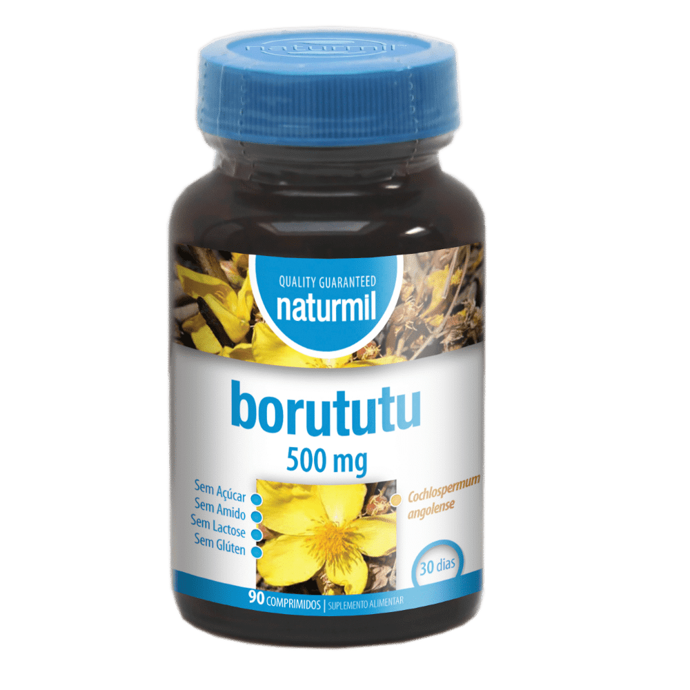 Cochlospermum angolense (Borututu; raiz), agente de volume: celulose microcristalina, antiaglomerantes: fosfato dibásico de cálcio anidro, estearato de magnésio, dióxido de silício.