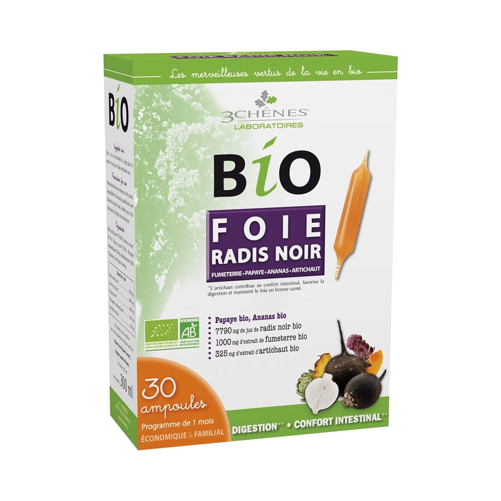 Foie Radis Noir é produzido com ingredientes biológicos que contribuem para o conforto intestinal, favorecem a digestão e mantêm a saúde do fígado.