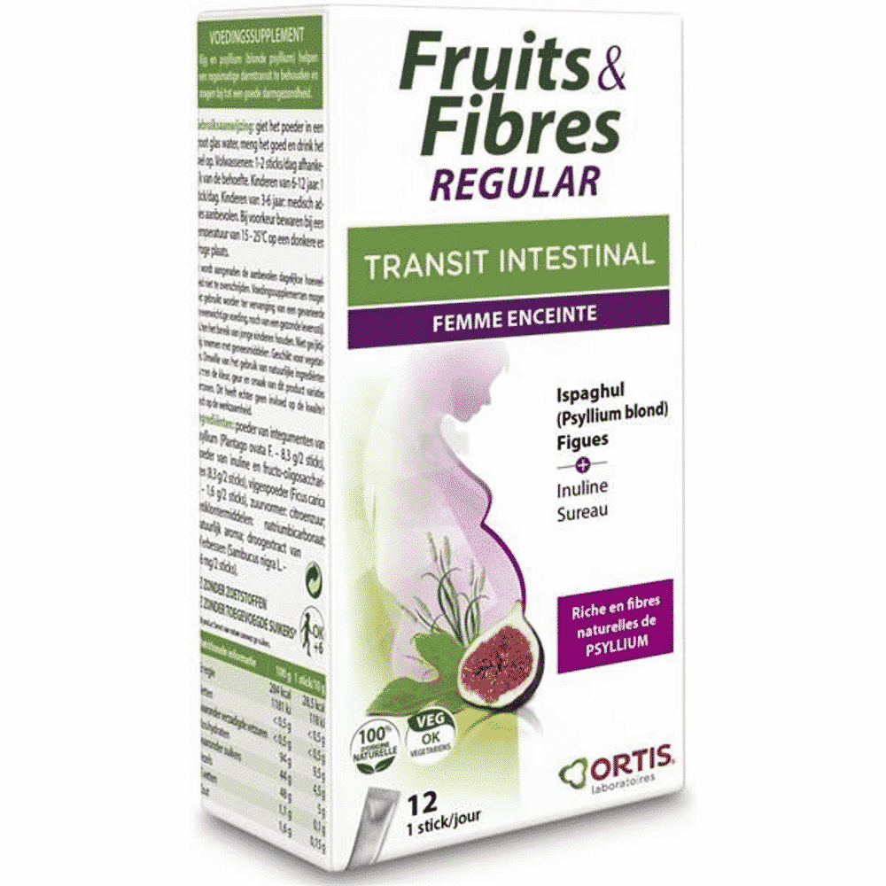 Cascas de psílio em pó (Plantago ovata F.), inulina e oligofrutose em pó, figo em pó (Ficus carica L), acidificante, ácido cítrico, antiaglomerante: bicarbonato de sódio, dióxido de silício, aroma natural, extrato seco de sabugueiro (Sambucus nigra L.).