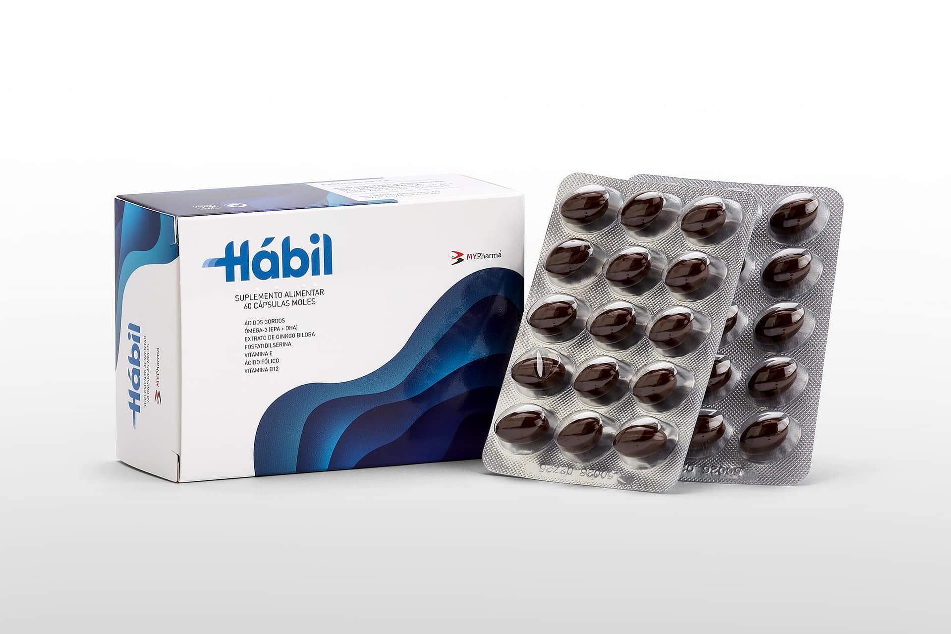 Ácidos Gordos | Ómega-3 (EPA + DHA) | Extrato de Ginkgo Biloba | Fosfatidilserina | Vitamina E | Ácido Fólico | Vitamina B12