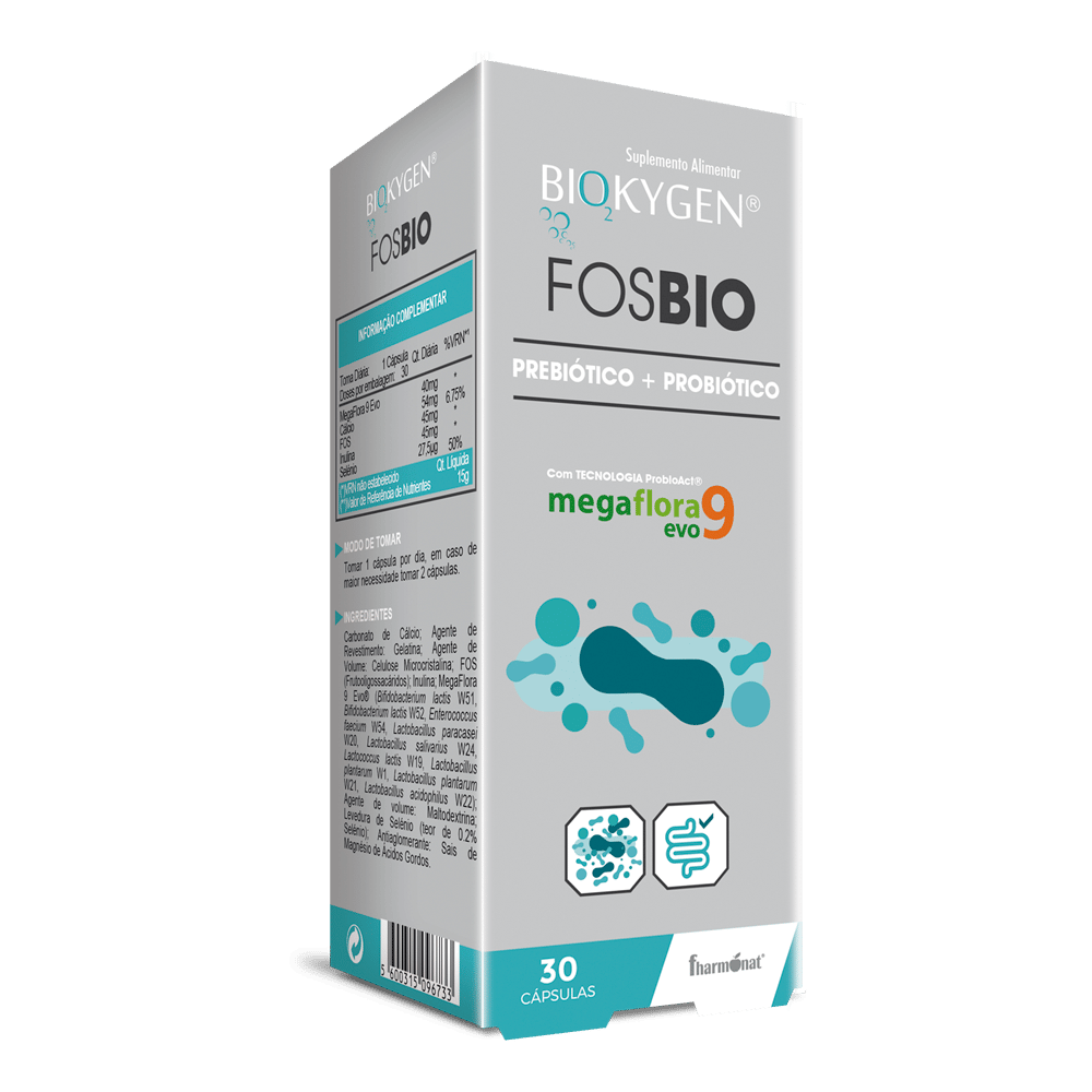 Carbonato de Cálcio 30%, Agente de Revestimento: Gelatina, Agente de Volume: Celulose Microcristalina, FOS (frutooligossacáridos) 9%, Inulina 9%, MegaFlora 9 Evo (Bifidobacterium lactis W51, Bifidobacterium lactis W52, Enterococcus faecium W54, Lactobacillus paracasei W20, Lactobacillus salivarius W24, Lactococcus lactis W19, Lactobacillus plantarum W1, Lactobacillus plantarum W21, Lactobacillus acidophilus W22) 8%, Agente de volume: Maltodextrina, Levedura de Selénio (teor de 0,2% Selénio) 2,8%, Antiaglomerante: Sais de Magnésio de Ácidos Gordos.