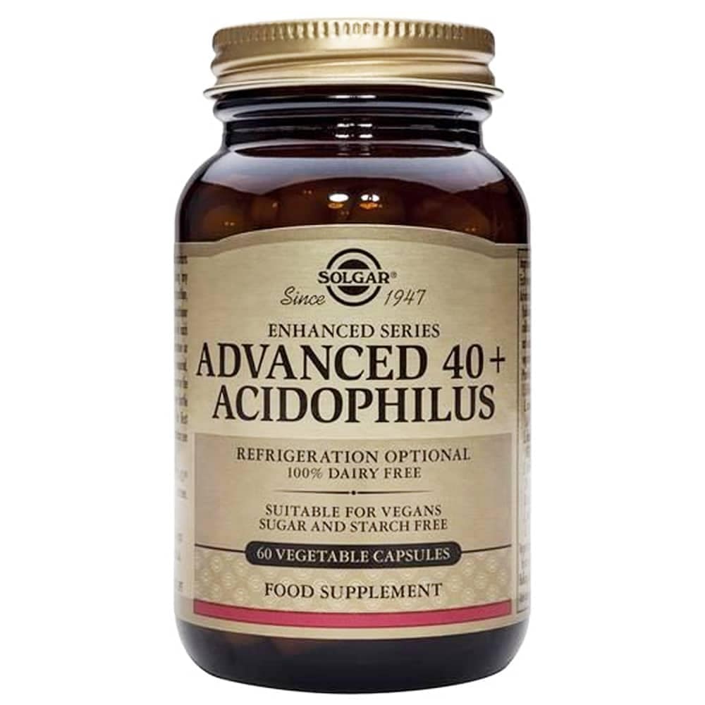 Complexo de Advanced Acidophilus 40+ (agente de volume: maltodextrina, celulose microcristalina, alginato de sódio, culturas (microrganismos), antiaglomerantes: dióxido de silício, estearato de magnésio vegetal) Fornecendo 1,5 biliões de microrganismos: L.acidophilus, LA-5R 300 milhoes de microrganismos L.rhamnosus GG, LGGR 300 milhões de microrganismos, L.paracasei, L. CASEI 431R 300 milhões de microrganismos, B.lactis, BB-12R 300 milhões de microrganismos, S. termophilus, TH-4R 300 milhões de microrganismos, Agente de volume: celulose microcristalina, Antiaglomerantes: estearato de magnésio vegetal, Invólucro da cápsula: hidroxipropilmetilcelulose.