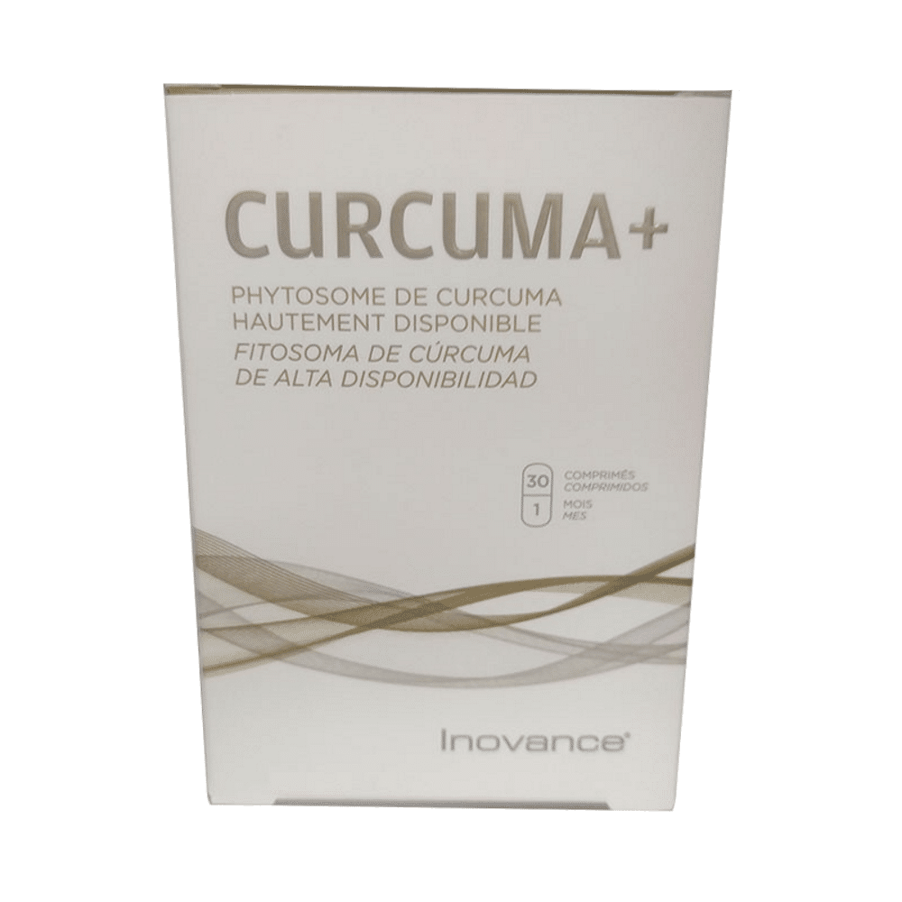 Preparação à base de Curcuma (emulsificante: lecitinas de soja, agente de volume: celulose microcristalina, extrato de rizoma de Curcuma (Curcuma longa) (dosado em curcuminoides)), antiaglomerante: carbonato de magnésio, agente de volume: celulose microcristalina, extrato de fruta de abacaxi (Ananas comosus) (dosado em bromelaina) (soja), antiaglomerantes: fosfato dicálcio, mono-e diglicerídeos de ácidos gordos, sais de magnésio de ácidos gordos, extrato de fruta de papaia (Carica papaya) (dosado em papaína), agentes de revestimento: hidroxipropilmetilcelulose, celulose microcristalina, ácidos gordos.