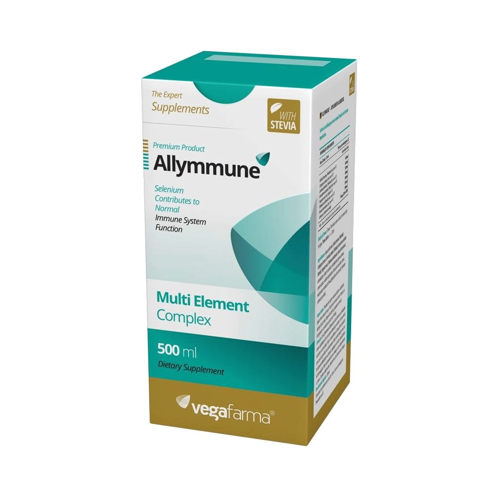 Allymmune, contém edulcorante, extratos de plantas, cogumelos e minerais